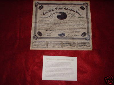 Title (ebay affiliate link): Civil War 1863 $100 Confederate Bond W/Coupons, replica