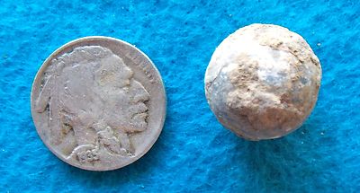 DUG CIVIL WAR BULLET - CSA Round Ball & 1935 Buffalo Nickel