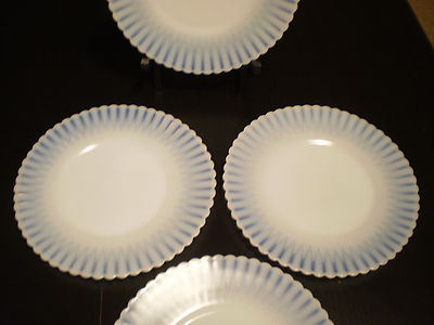 SET of 4 PetalWare Plates White (milk galss)Opalescent Blue Edges VERY PRETTY!!