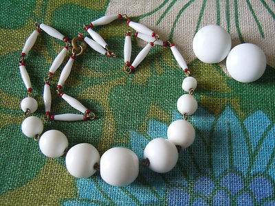 Title (ebay affiliate link): Lovely Vintage 1950s Milk White Glass Bead Necklace & Clip On Earrings
