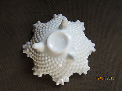 Fenton Hobnail Milkglass Ribbon Edged Three Legged Dish