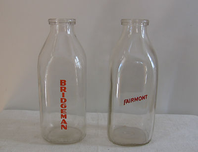Title (ebay affiliate link): Vintage Fairmont & Bridgeman One Quart Clear Glass Milk Bottles 1-11-14 MINN
