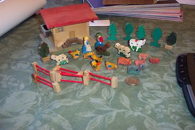Title (ebay affiliate link): antique farm set with 26 pieces. made in Italy building is 3.5" tall