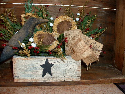 VINTAGE BOX~CRACKLED PAINT~CROW~SUNFLOWERS~PRIM