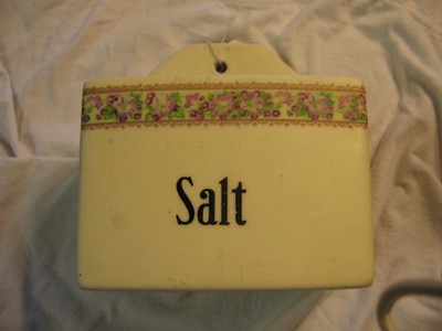 Title (ebay affiliate link): Yellow Glazed Stoneware Hanging Salt Box - AAFA