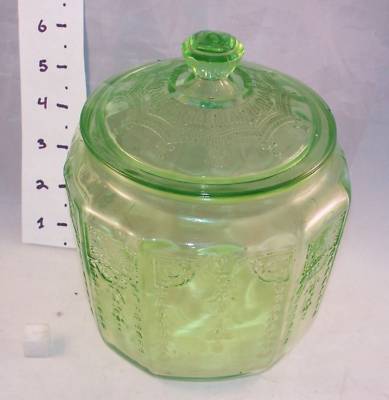 Green Depression Glass Princess Cookie Jar wLid Hocking