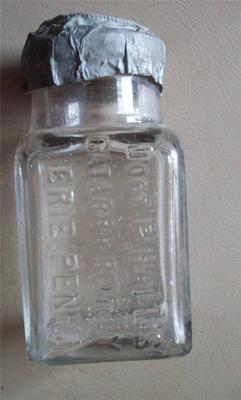 RARE 1890 DOCT P HALL'S CATARRH REMEDY MEDICINE BOTTLE/ERIE, PA-w/CORK&METAL LID