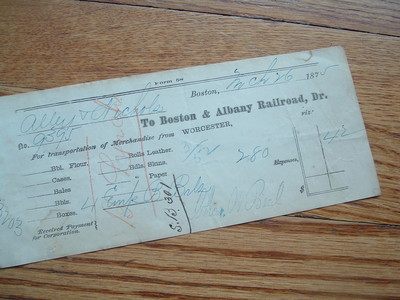 Title (ebay affiliate link): 1875 "Worcester,Boston,Albany Railroad"shipping animal skins handwritten letter!