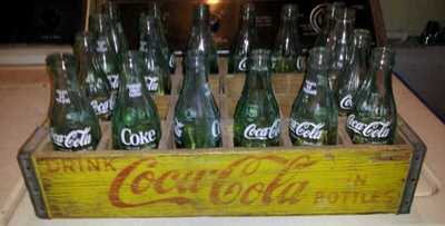 Title (ebay affiliate link): Vintage Yellow Coca-Cola Crate and Cola-Cola Bottles