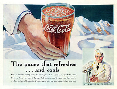 Title (ebay affiliate link): 1937 The pause that refreshes Coca-Cola Soda LARGE SIZE Coke Memorabilia Art AD