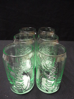 NEW! Coca Cola Glass Can Set Of 6 Coke Glasses Bottle Green Tint