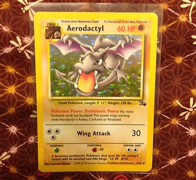 Title (ebay affiliate link): POKEMON CARD AERODACTYL EX SHINY HOLO LEGEND PRIME FULL FOSSIL BASE SET MNT RARE