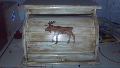 Moose ,primitive, hand painted bread box! UNIQUE! perfect Christmas present