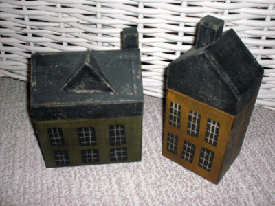 2 Primitive Cardboard Saltbox Houses