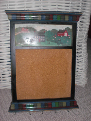Title (ebay affiliate link): Primitive Wood Wooden Wall Cork Bulletin Board Key Holders Farm Scene 19" Teal