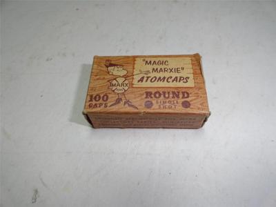 Title (ebay affiliate link): Marx 100 Cap Gun Round "Magic Marxie" Atomcaps Empty Box Only