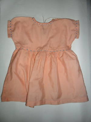 GOOD ANTIQUE HAND EMBROIDERED PEACH DRESS FOR DOLL