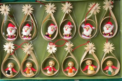 Title (ebay affiliate link): 12 VTG Christmas ornaments Santa angel Scandinavian wood style 1960's 1970's