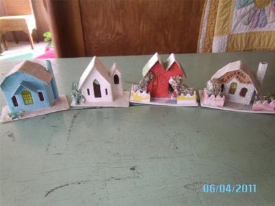 Title (ebay affiliate link): Lot of 4 Vintage Mica Cardboard Putz House Village Japan Ornament Christmas