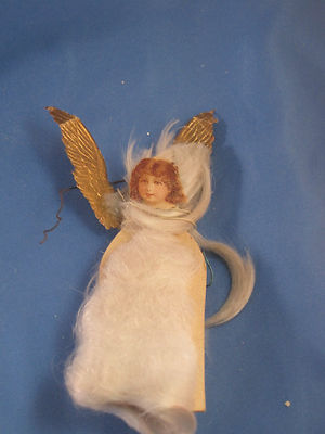 Antique German Spun Glass and Dresden winged Angel Christmas Tree Ornament