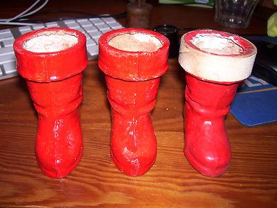 ANTIQUE VINTAGE -SANTA BOOTS - PAPER MACHE CANDY CONTAINERS- SET OF 3 - GERMANY?