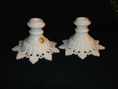 Title (ebay affiliate link): 2 Vintage Westmoreland Milk Glass Ring and Petal Candlesticks Candle Holders
