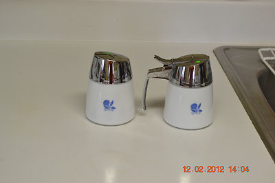 Corning Corelle Pyrex Blue Cornflower Cream & Sugar Set Milk Glass Vintage