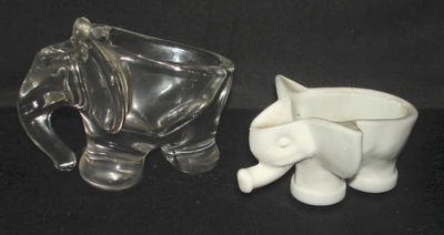 Vintage Figural Glass African Elephant Ashtray & Milkglass African Elephant A