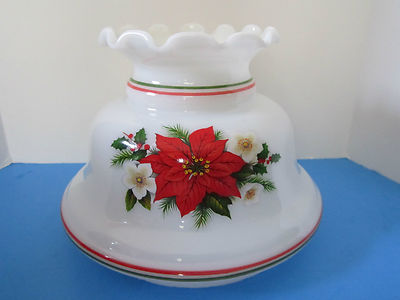 Vntage 50's Fenton? MILK GLASS Hurricane Oil Lamp Shade Ruffled Rim wPoinsettias