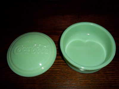Coca Cola Jade Jadeite Milk Glass Covered Dish with Lid