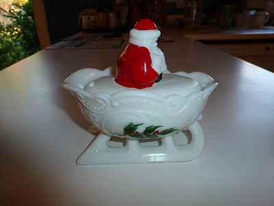 Westmoreland Milk Glass Santa Claus & Sleigh Candy Dish