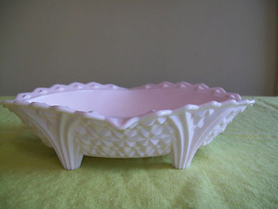 Vintage Jeannette Pink Shell Milk Glass Florentine Footed Oval Bowl