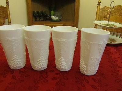 Title (ebay affiliate link): Set of four Beautiful Vintage Colony Harvest paneled white milk glass tumblers