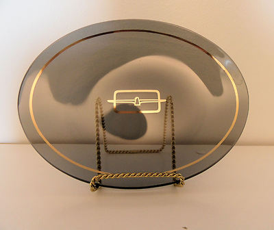 Vintage Gold Ford Thunderbird Logo Gray Smoke Glass Dish Oval Plate Sales Award