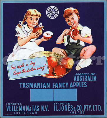 ONE APPLE A DAY Original Australia Apple Fruit Crate Label