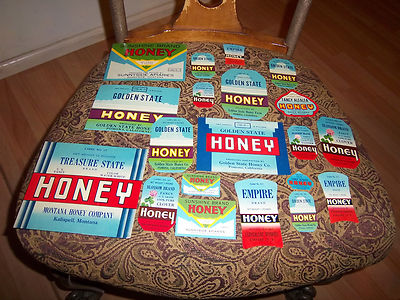 Title (ebay affiliate link): VINTAGE LOT UNUSED HONEY LABELS CALIFORNIA NY MONTANA ILLINOIS COLORADO