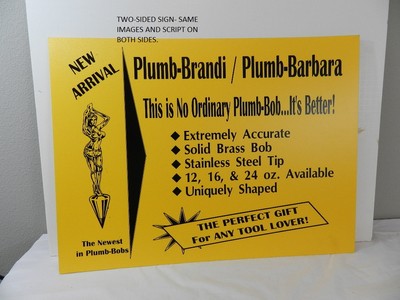 VINTAGE ADVERTISING SIGN- PLUMB-BRANDI & PLUMB-BARBARA- VINTAGE TOOL SIGN-NICE