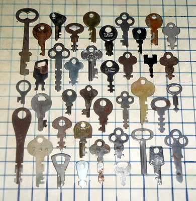 Title (ebay affiliate link): Antique Vtg old flat skeleton key lot padlock lock cabinet scrapbook craft box