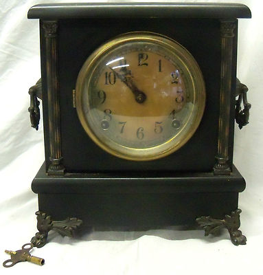 Title (ebay affiliate link): Old Antique Sessions 8 Day Half Hour Strike Shelf Mantle Clock w Pendulum, Key