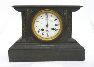 Title (ebay affiliate link): 19th Century Antique Black Slate Japy Freres Mantle Clock with Painted Face
