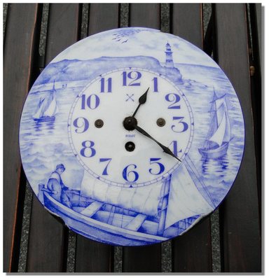 Title (ebay affiliate link): Antique Blue Delft GERMAN WALL CLOCK 8 day movement sailing ships light house