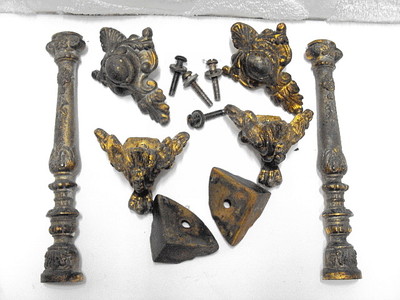 ANTIQUE CAST METAL SIDE ORNAMENTS COLUMNS AND FEET FOR A MANTEL CLOCK NR