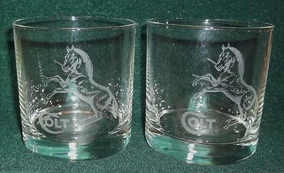 Title (ebay affiliate link): 2 VINTAGE ETCHED CLEAR GLASS COLT FIREARMS HIGH BALL GLASSES W/ HORSE LOGO