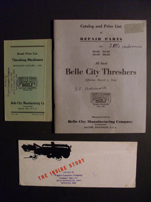 BELLE CITY THRESHERS THRESHING MACHINE AD, PARTS LIST, & PRICE LIST - ORIGINAL!