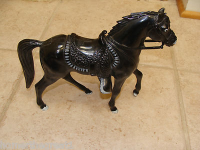 Title (ebay affiliate link): Vintage 1950s Large Plastic Black Stallion Saddle Reins Stirrups Intact 9" long