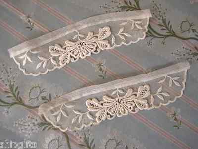 Title (ebay affiliate link): Pair Antique Cotton Schiffli Embroidered Net Lace Cuffs Doll Dress Wedding Trim