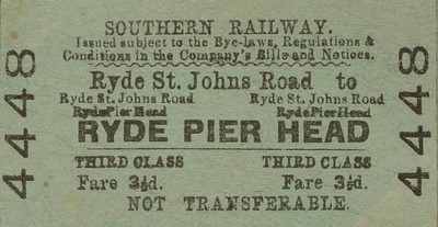 Railway ticket UK Southern Railway Ryde St John Road third class single 1951