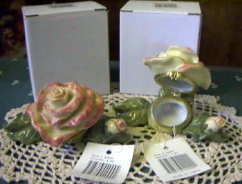 Title (ebay affiliate link): Two Ceramic Flower Hinged Trinket Boxes by A Special Place 1999 Capodimonte-look