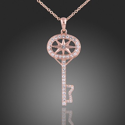 girl friend gift vintage key pendant necklace chain clear crystals N90