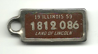 Vintage Disabled DAV License Plate Mini Tag Keychain 1959 ILLINOIS #1812 068